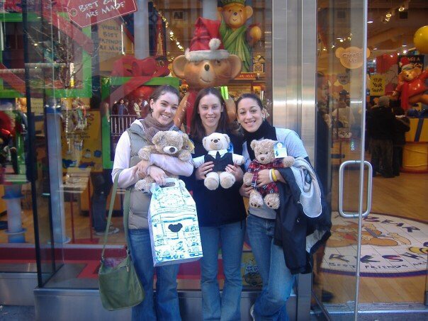 On Saturday we left our apartment all together and headed to midtown to the heart of the Christmas chaos. Amy lead us to her surprise and Meghan and I found ourselves giddy with excitement when we realized we were going to Build-a-Bear! Yes, that’s right, three 19 year old women(girls) were stoked about building our own stuffed bears! We went through the steps of stuffing our own bears finishing off with making a wish on the heart before sewing it up. Lastly we all gave them very well thought out names. Amy and I named our bears after the legendary dance pioneers Martha Graham and Isadora Duncan. Meghan named hers Sampson, after God knows who.